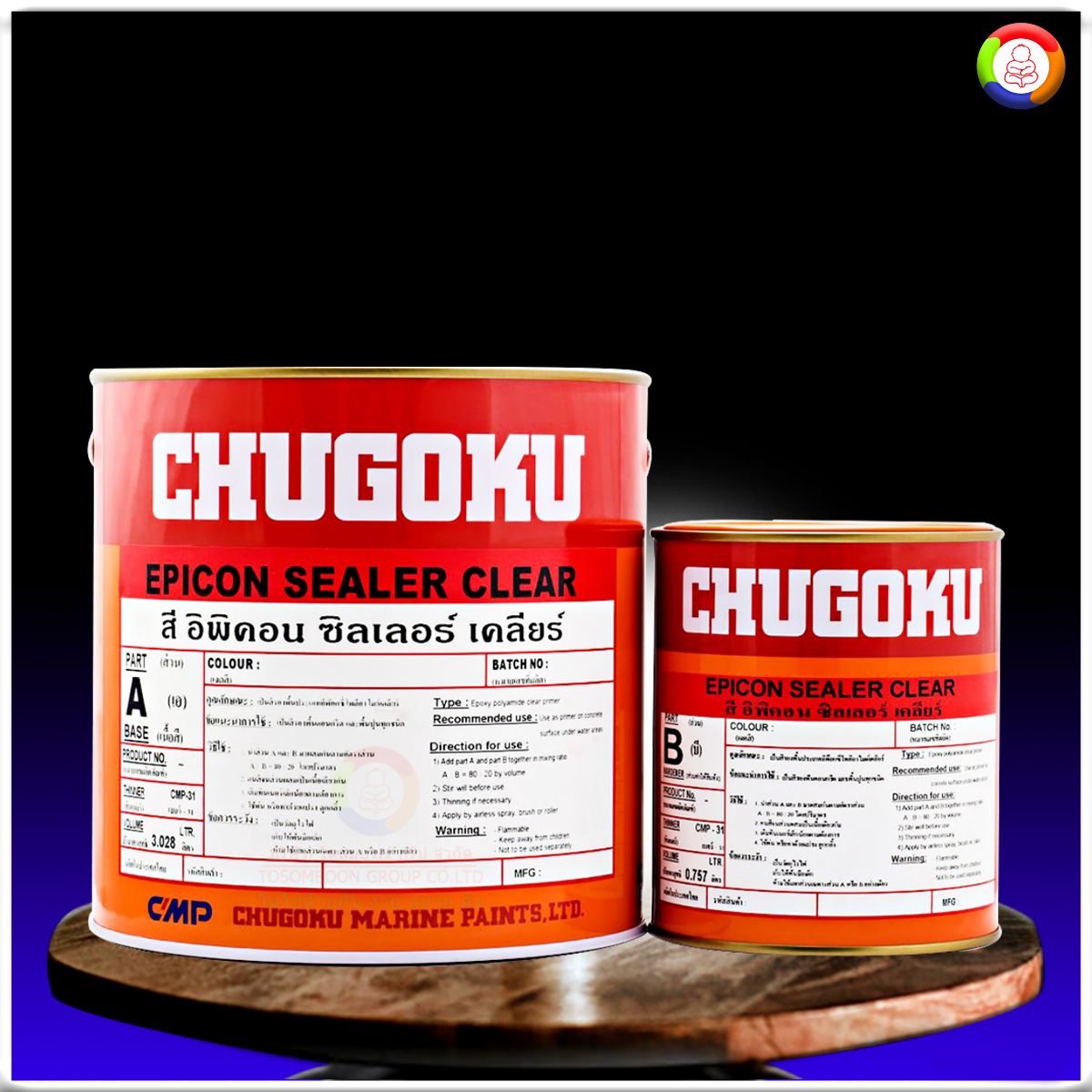สีชูโกกุ อิพิคอน ซีลเลอร์ เคลียร์ CHUGOKU EPICON SEALER CLEAR เป็นสีอีพ็อกซี่วานิชชนิดสองส่วนผสมกัน ใช้สำหรับรองพื้นบนผิวคอนกรีต ปูนฉาบและทับหน้าด้วยสี ไฮฟลอร์ 100 เอช, ไฮฟลอร์ 830, ไฮฟลอร์ 900 และ ไฮฟลอร์ 900 ชนิดเงา EPICON SEALER CLEAR is a two pack polymide cured epoxy clear color for use as primer / sealer on concrete surface in combination with a complete pure epoxy system.ชนิดของผลิตภัณฑ์ : สีรองพื้นอีพ็อกซี่สีใส สำหรับงานพื้น (Epoxy Primer polymide clear)